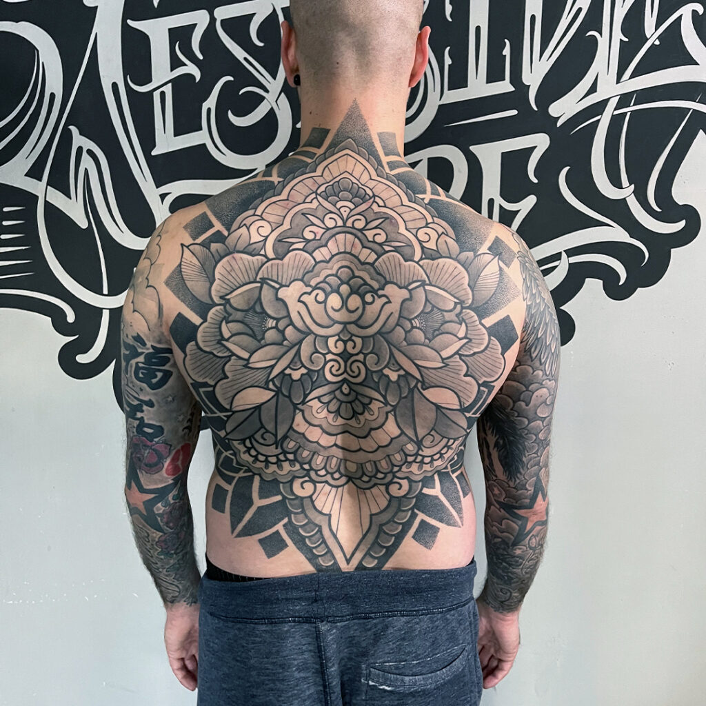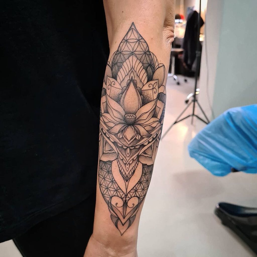 Mit viel Geduld und handwerklicher Präzision setzen unsere Künstler jedes Design um, Punkt für Punkt und Linie für Linie, um detaillierte und harmonische Muster zu erzeugen. Das Spiel aus leichten und dichten Punkten sowie klaren Linien sorgt für Tiefe und Textur und verleiht jedem Tattoo eine besondere, strukturierte Optik.